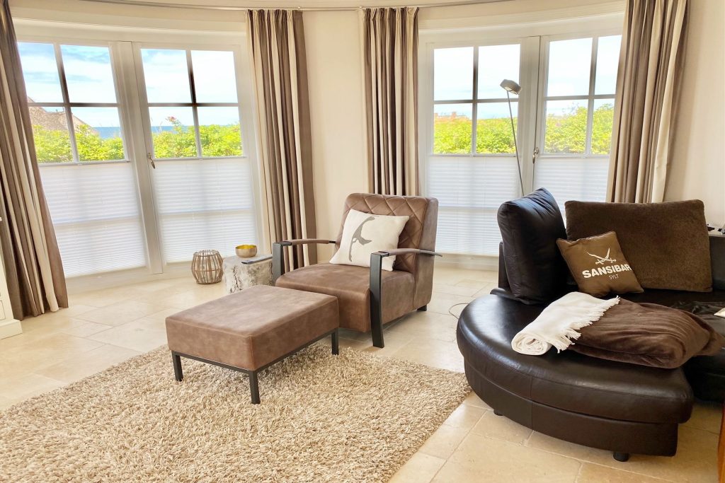 Wir entführen Sie in die bezaubernde Dünenlandschaft Rantums und verschaffen Ihnen zum einen von der südlichen Haushälfte einen exklusiven Blick auf das idyllische Wattenmeer, zum anderen von der gegenüberliegenden Hausseite auf die raue Nordsee.