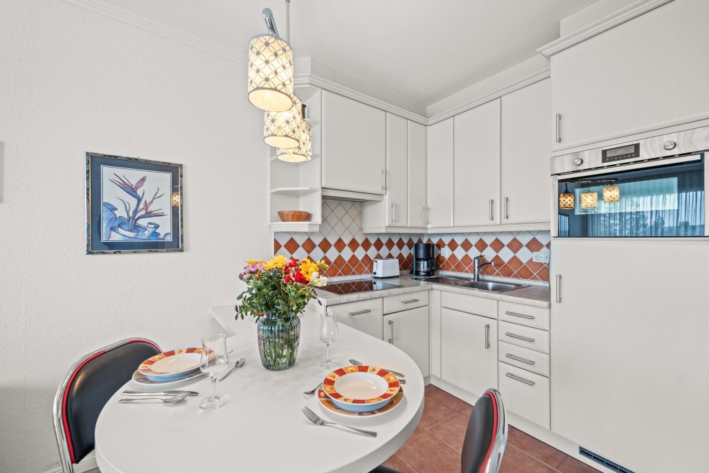 Die Unterkunft liegt im 1. Obergeschoss und hat einen großen, möblierten Balkon nach Osten. Ausgestattet mit Flachbildschirm und Radio im Wohnzimmer. Die Einbau-Küche ist mit...