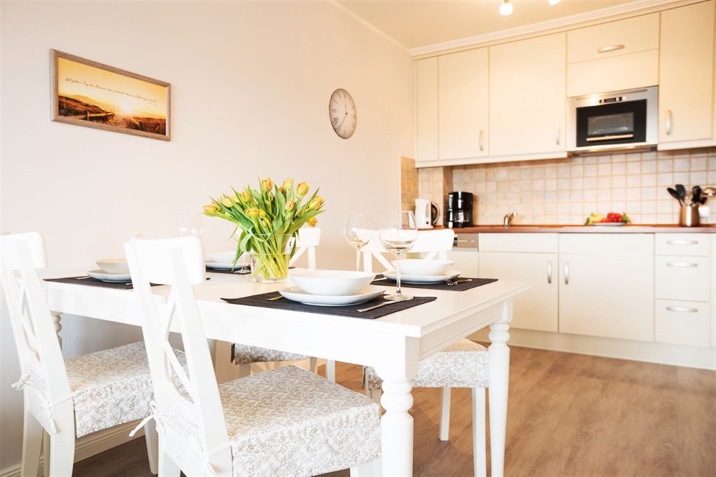 Eine komplett neu renovierte Ferienwohnung erwartet Sie. Hochwertige Tischlerarbeiten in Form von großzügigen Schränken, tollen Heizungsverkleidungen oder ein wunderschönes, bequemes Bett mit Nachtkonsolen finden Sie vor. In der gesamten Wohnung wurde einheitlich ein sehr schöner und farblich akzentuierter Design-Bodenbelag verlegt. Hier wurden wirklich keine Kosten und Mühen gescheut, damit es Ihnen im Urlaub richtig gut geht. Das Wohnzimmer ist in warmen Erdtönen eingerichtet. Viele liebevolle Details führen dazu, dass man sich hier gut behütet und einfach nur noch wohl fühlen kann. Die Schlafcouch im Wohnzimmer ist bequem und einfach zu bedienen. Für zwei Personen ist die Wohnung perfekt, bis zu 4 Personen können aber untergebracht werden.Die Wohnung liegt im 2. OG mit Balkon Richtung Osten und ist damit von der Straße abgewandt. WLAN vorhanden (ohne Gewähr)
