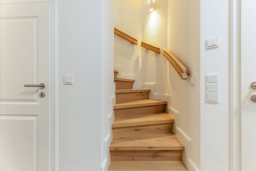 Im Erdgeschoß befindet sich der lichtdurchflutete, hochwertig eingerichtete Wohnraum mit bequemer Couch, die auch als Schlafcouch mit den Maßen 160x200 genutzt werden kann und TV. Außerdem finden Sie hier die offene Küche, ausgestattet mit Geschirrspüler, einem Backofen-Mikrowellen-Kombigerät, Kaffeemaschine, Toaster und Wasserkocher. Angrenzend an die Küche befindet sich der moderne Essplatz. Auch ein Gäste-WC findet man im Erdgeschoss.